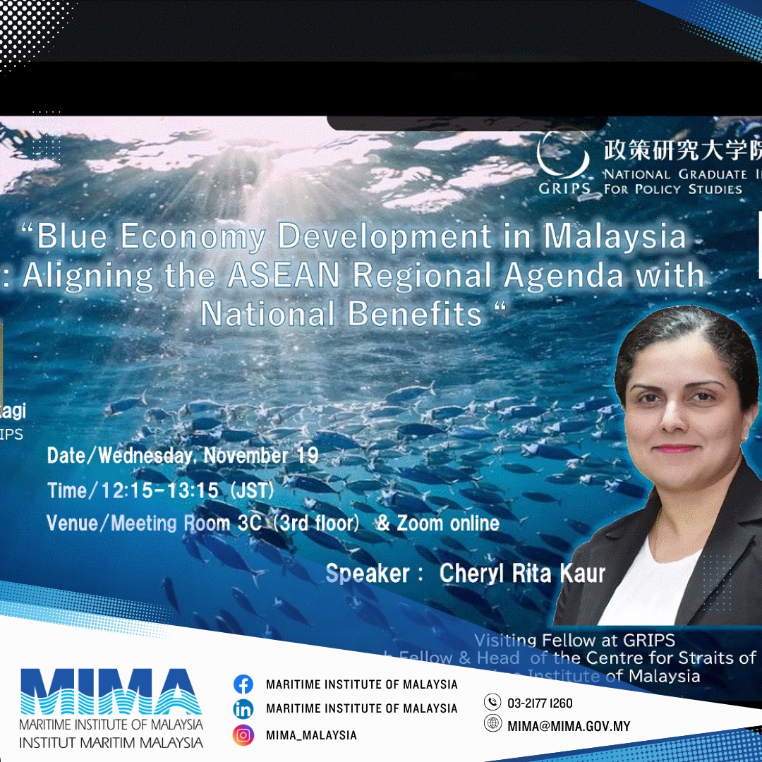 MIMA Research Fellow & Head of the Centre for Straits of Malacca, Cheryl Rita, was invited as a speaker at the Seminar on the Blue Economy, organised by the National Graduate Institute for Policy Studies (GRIPS) in Tokyo.